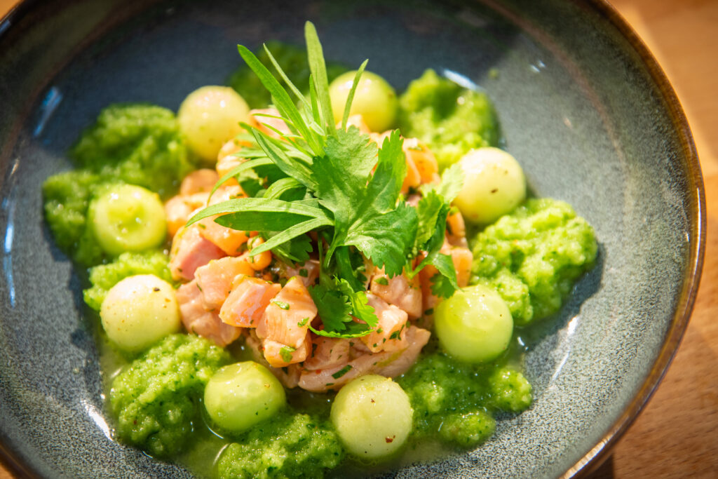 Lauwarmer Ziegenkäse im Südtüroler Speckmantel und Wildkräutersalat
